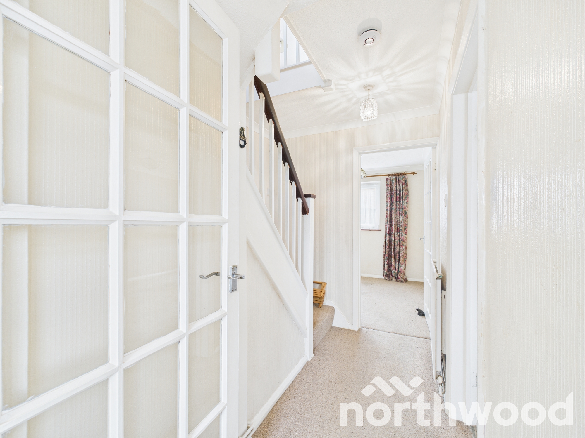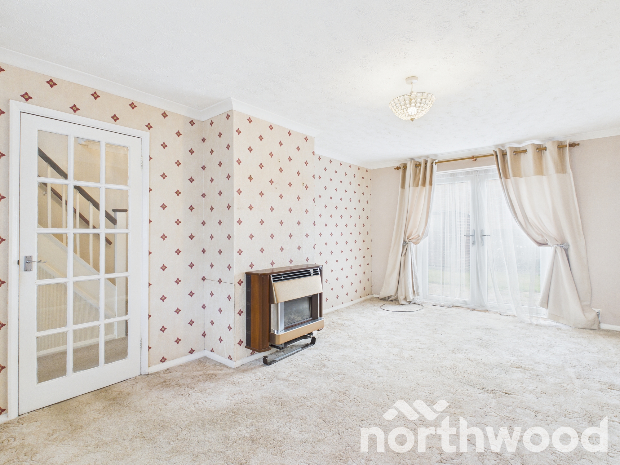 Inside, the accommodation begins with an entrance porch and cloakroom, leading into a welcoming hallway. The dual-aspect lounge features French doors opening onto the rear garden, while the separate dining room connects via an archway to the kitchen. These spaces offer excellent potential to be reimagined, perhaps opened up into a modern kitchen/diner that flows beautifully into the garden, ideal for contemporary living.