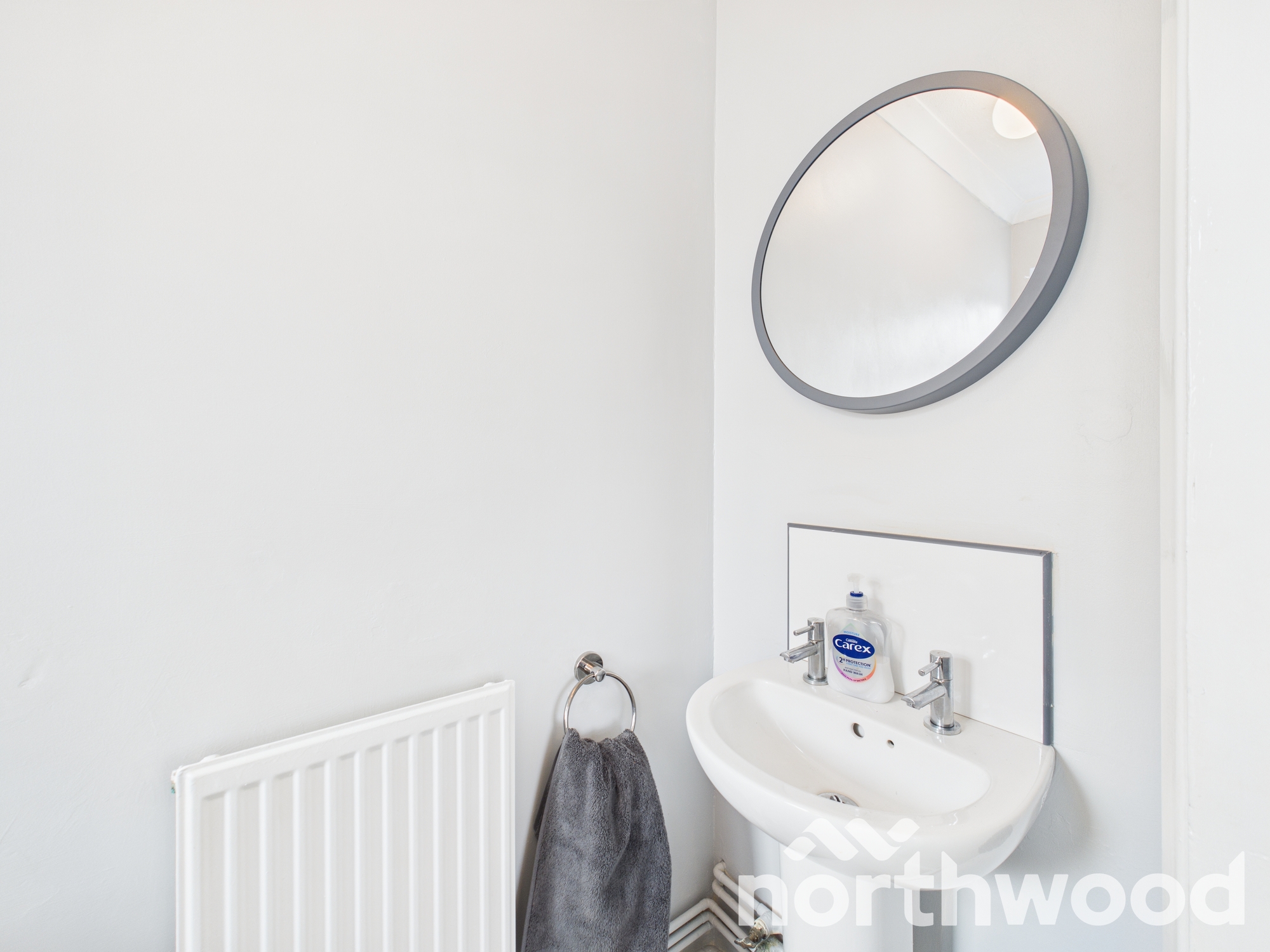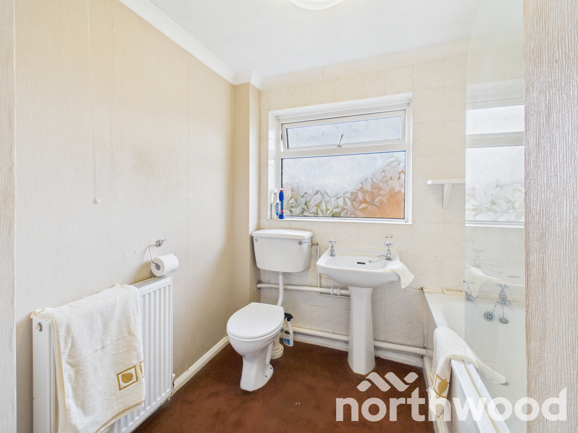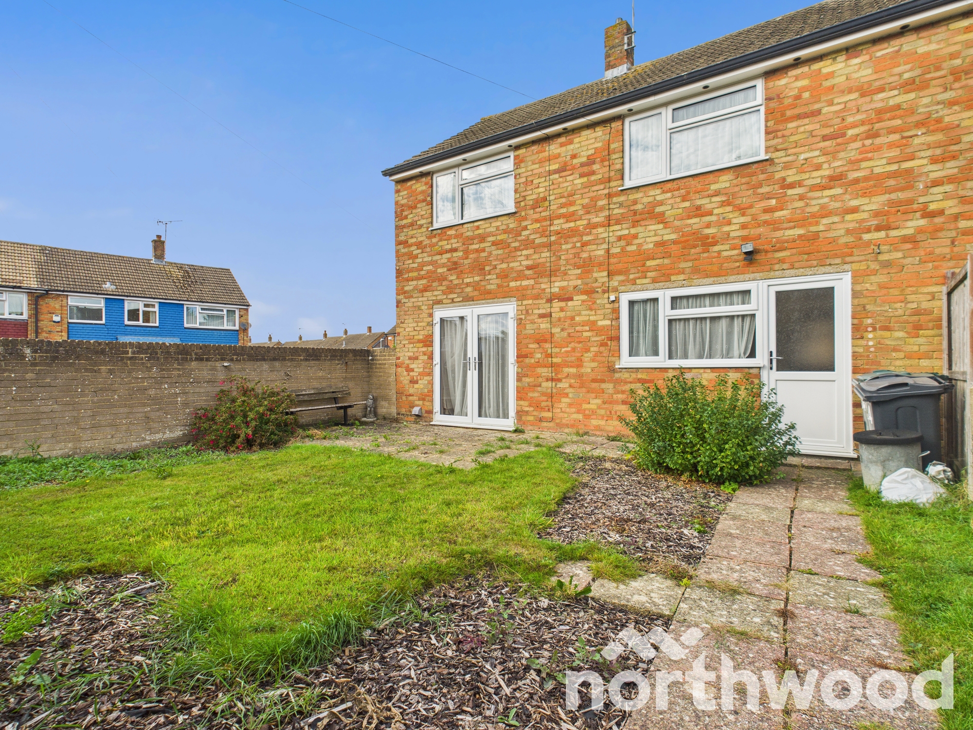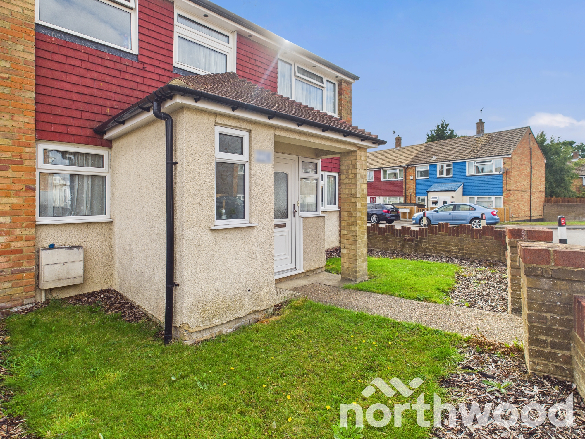 Outside : The rear garden features a paved terrace area and a lawn bordered by a wall, offering privacy and a great foundation for landscaping. A shed provides useful external storage. While there is no private driveway, a residents’ car park with unallocated spaces is located nearby, and a bus stop directly outside the property adds convenience for commuters.