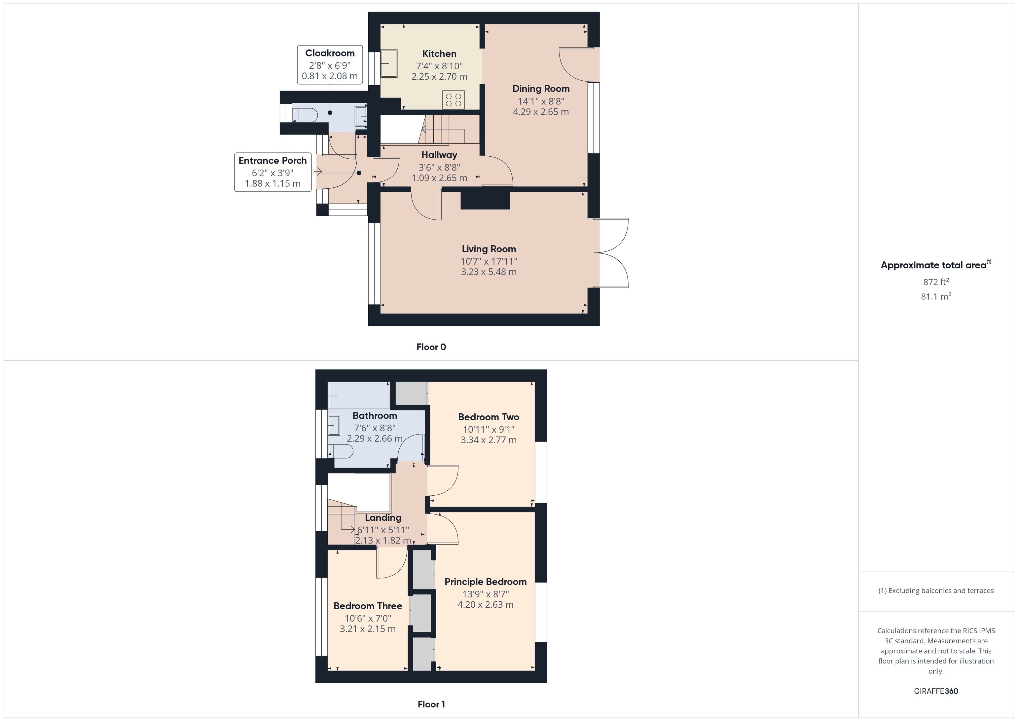 Entrance Porch : 6’2” x 3’9” (1.88m x 1.15m)