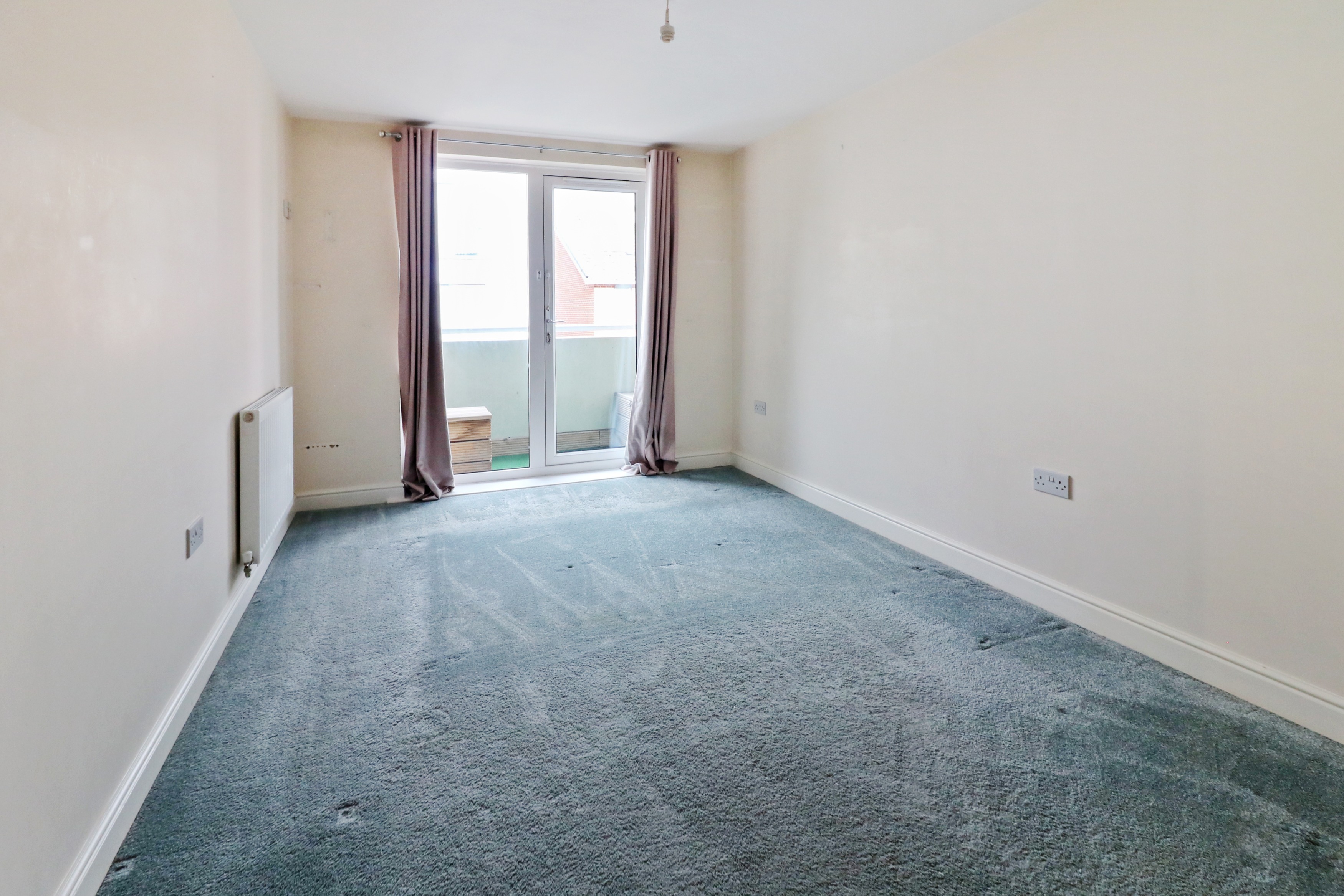 Upon entering the apartment, you’re welcomed by an entrance hallway with a built-in storage cupboard, leading to a modern family bathroom and two double bedrooms. The principle bedroom benefits from an en-suite shower room and direct access to the private balcony, which also connects to the open-plan living area, creating a seamless indoor-outdoor flow.