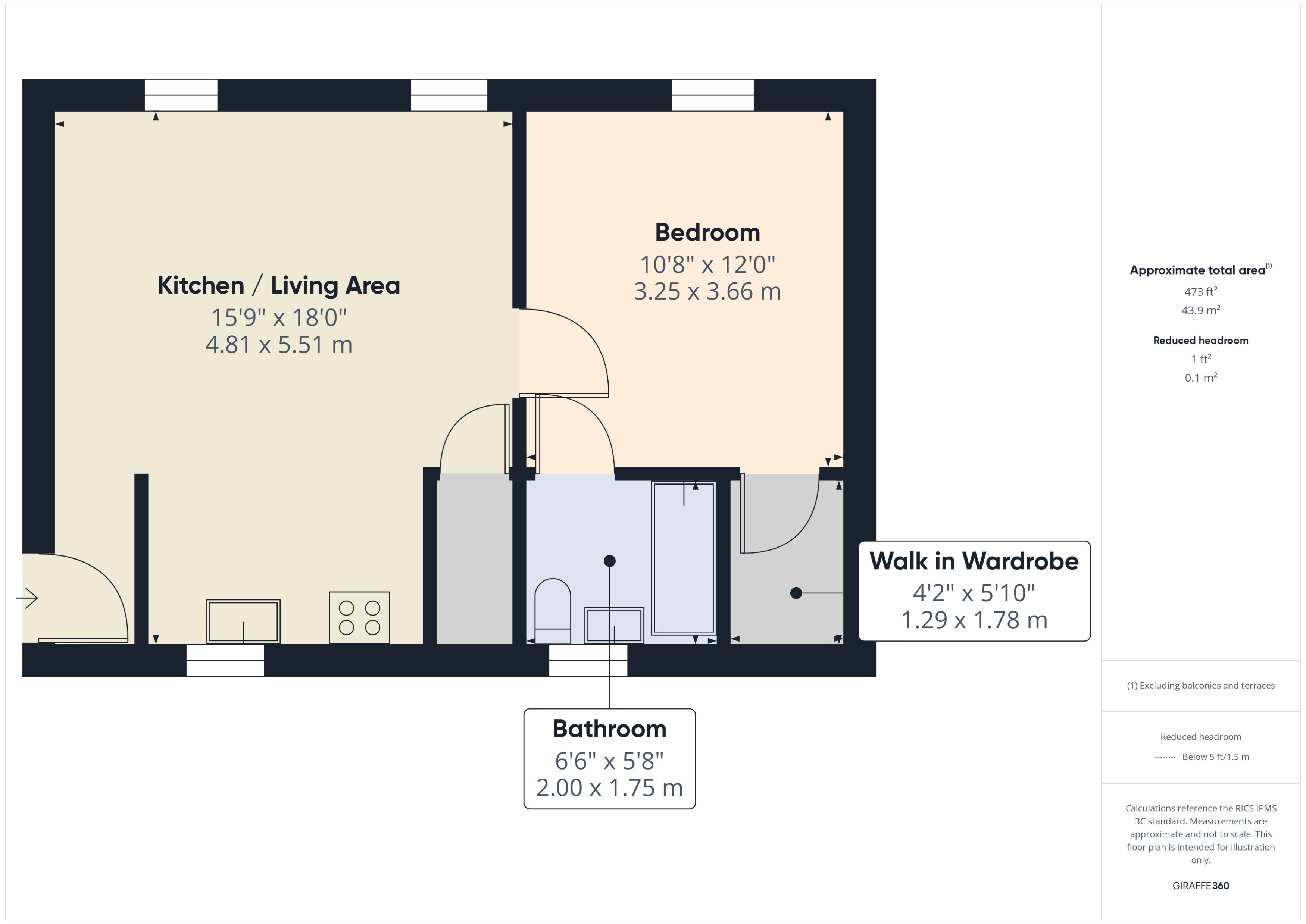 Approx. 473.7 sq ft / 44.0 sq m — thoughtfully arranged with no wasted space.