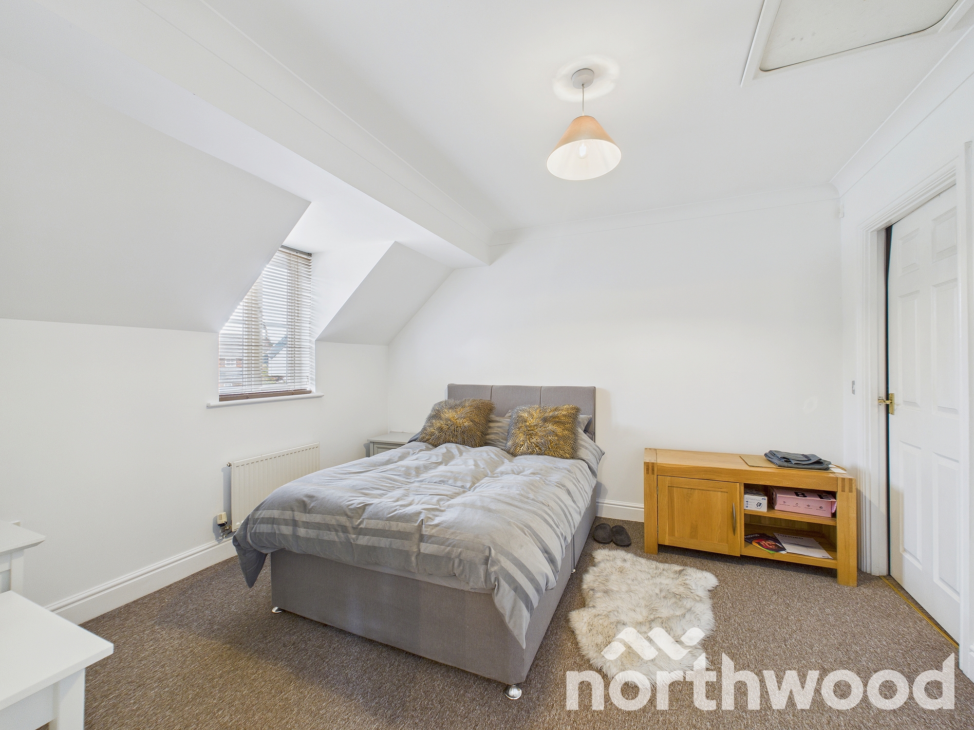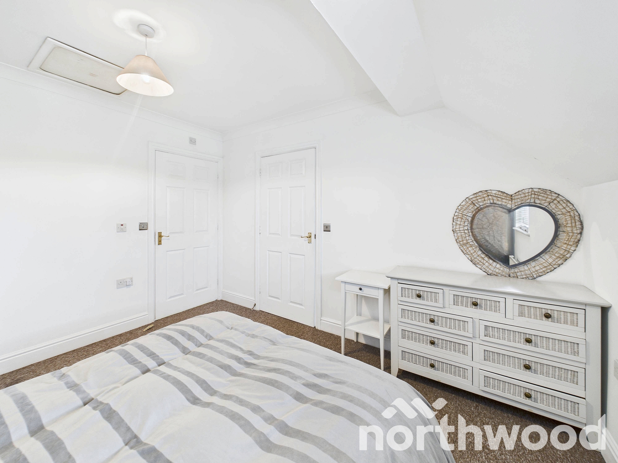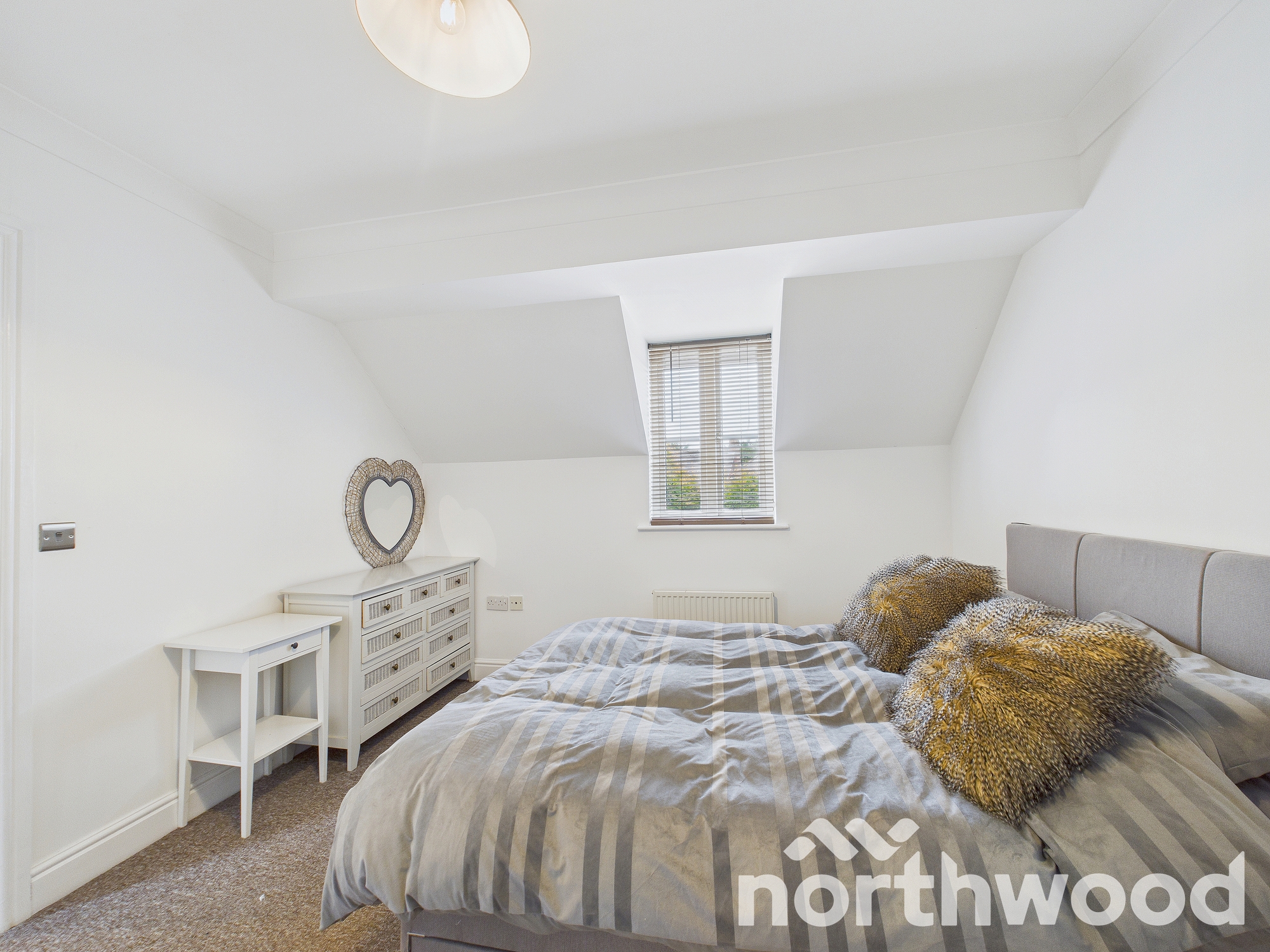 Generously proportioned (approx. 10’8″ x 12’0″) with sloped ceilings, a dormer window, and calming neutral tones a peaceful retreat with character.