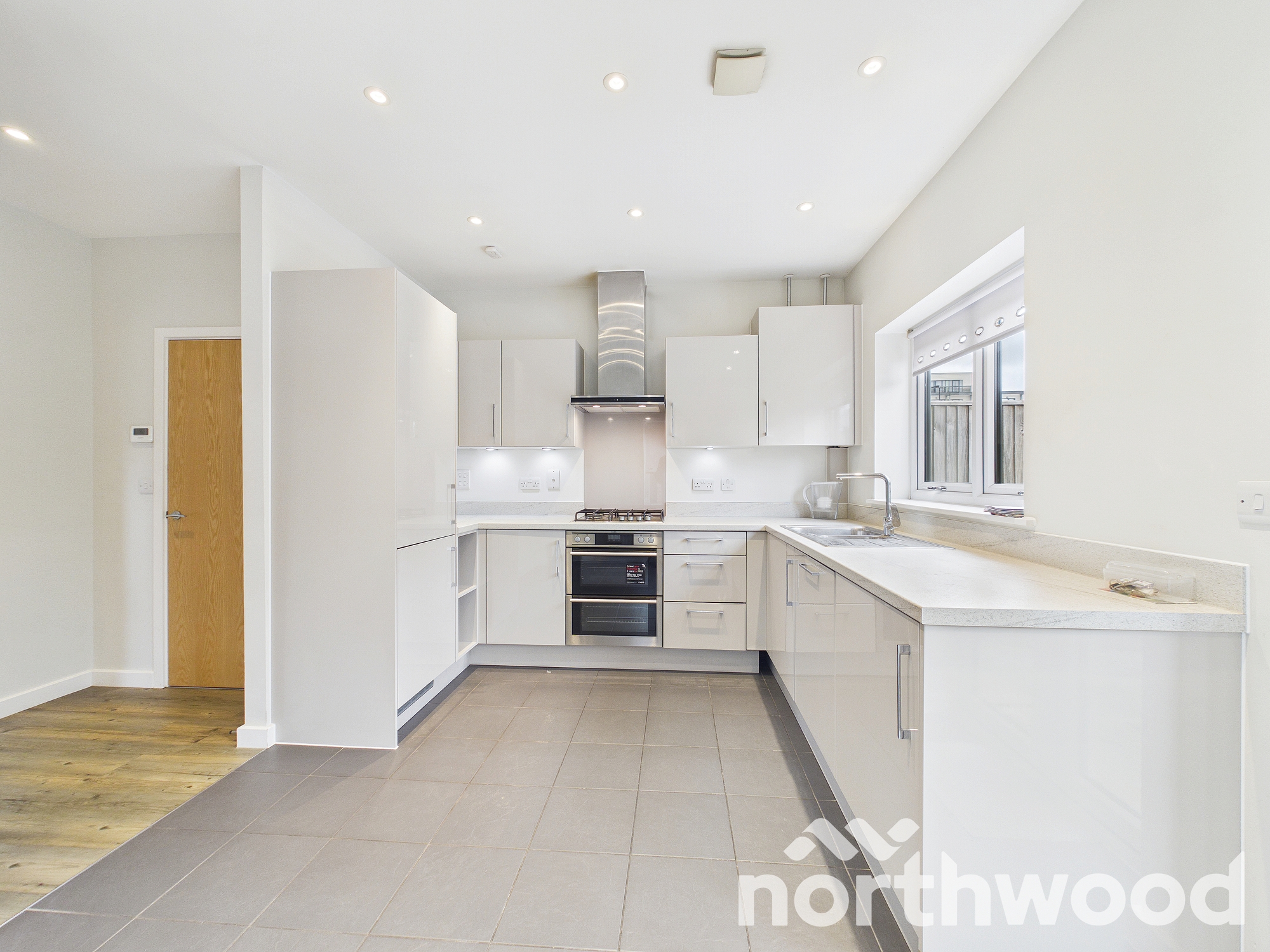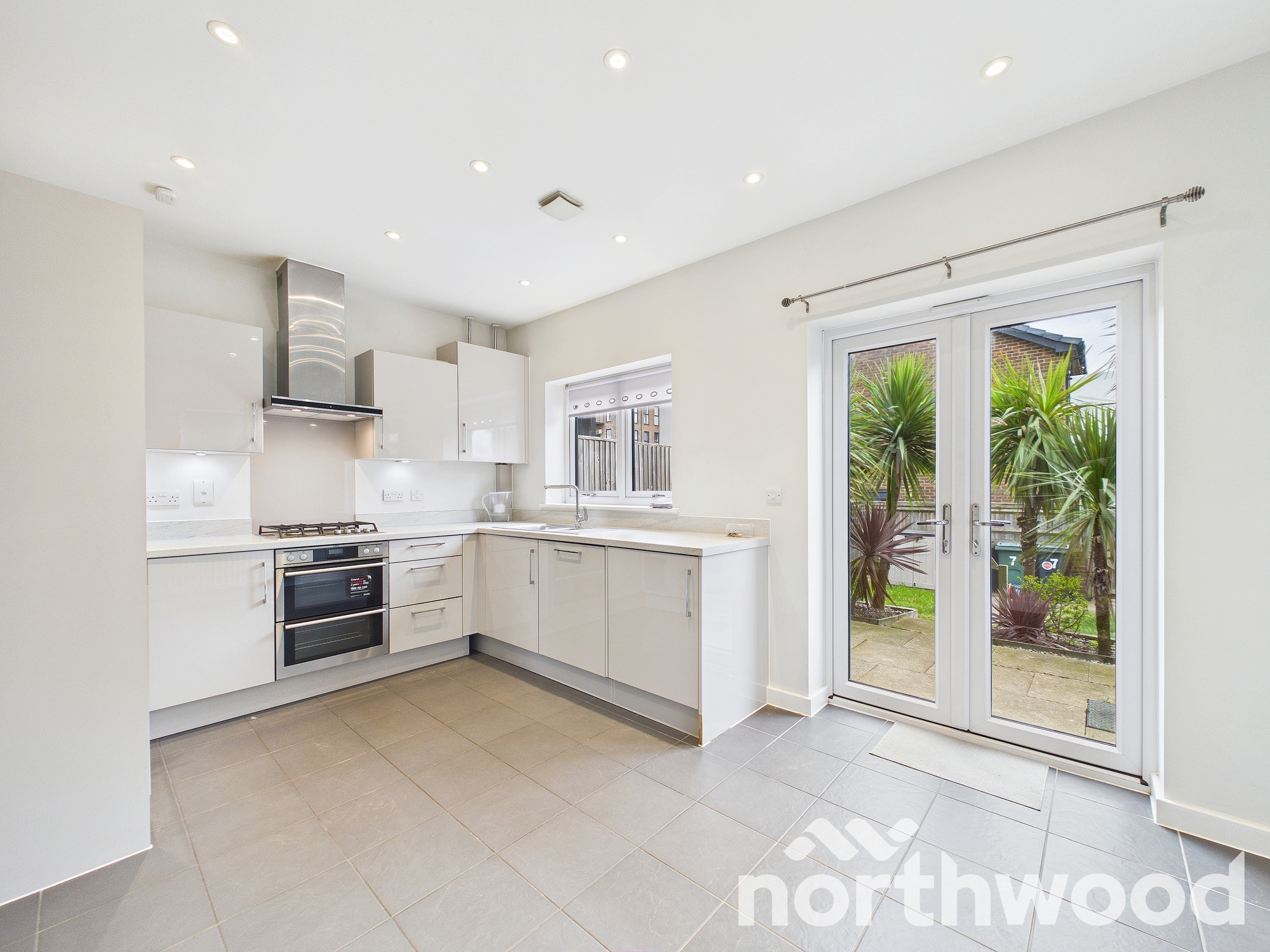 The kitchen/diner is a standout feature of the home bright, contemporary, and designed for both practicality and style. Sleek gloss cabinetry, generous work surfaces, and fully integrated appliances create a streamlined look, complemented by a gas hob with stainless steel extractor. Elecric oven, dishwasher and washing machine. French doors open directly onto the rear terrace, creating a seamless indoor outdoor flow and filling the room with natural light.