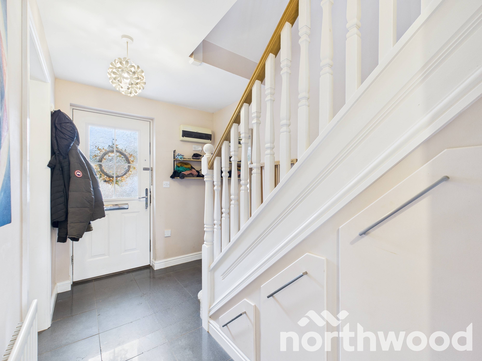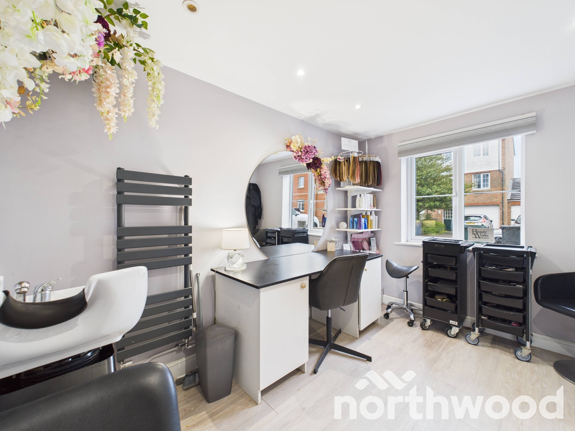 Step into a bright and welcoming entrance hallway that sets the tone for the rest of the home. To the rear, the open-plan kitchen and breakfast room is a standout feature, flooded with natural light and fitted with sleek cabinetry, integrated appliances, and generous worktop space. It’s a perfect spot for morning coffee or entertaining friends. The converted garage adds valuable flexibility and is currently used as a studio, but could easily serve as a fourth bedroom, home office, or snug. A cloakroom is neatly positioned under the stairs, adding practicality without compromising space.