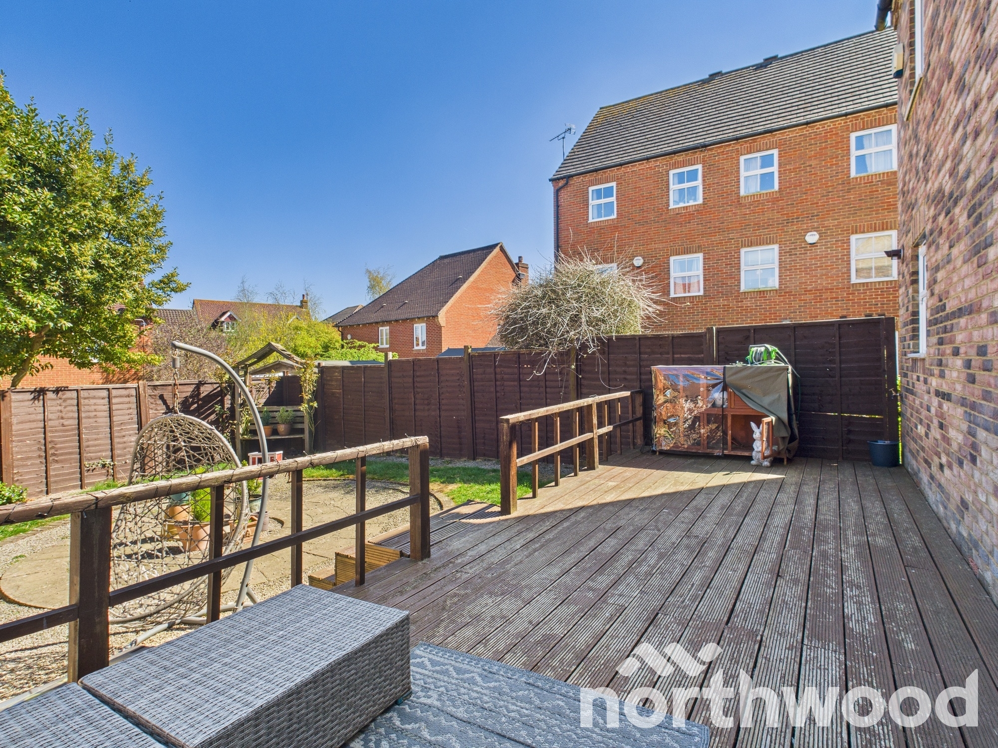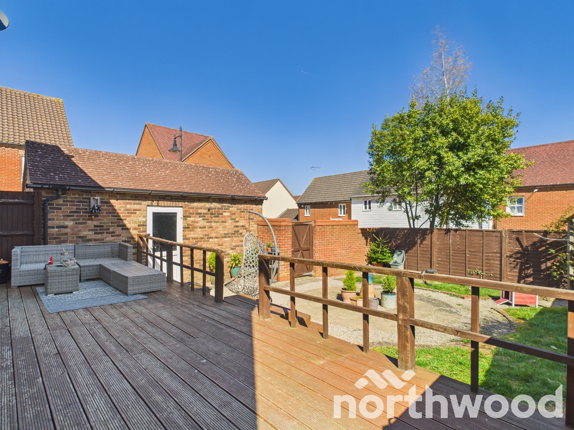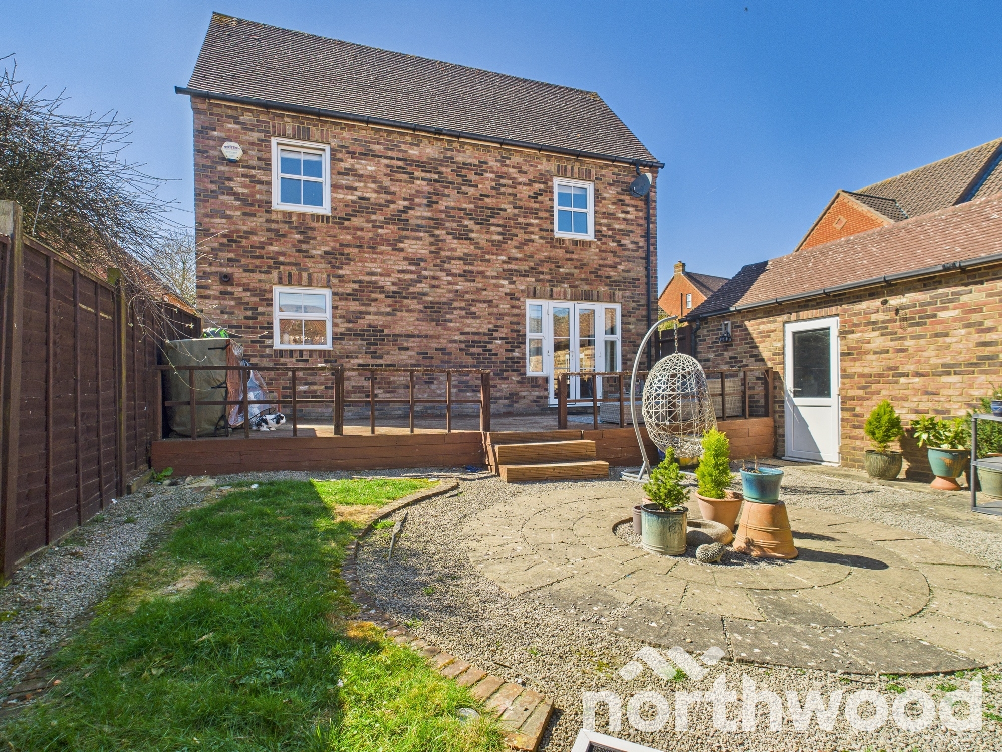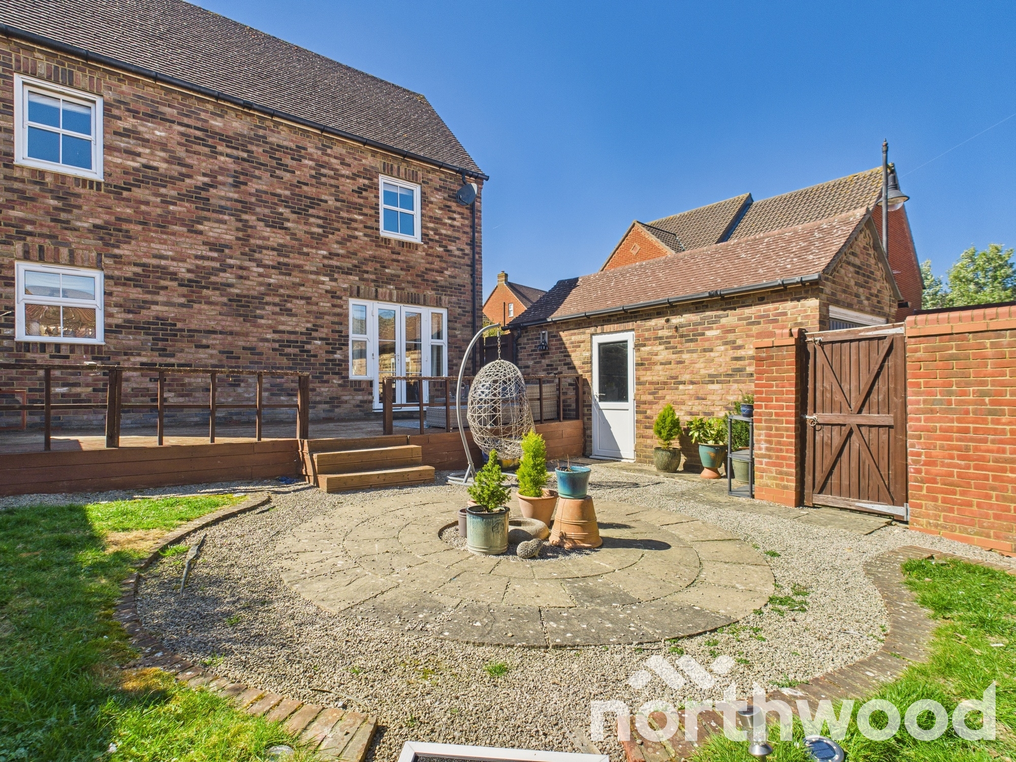 Outside there is an enclosed garden which is perfect for those summer evenings with a large elevated decked area to the rear of the property, leading down to the thoughtfully designed but low maintenance garden with circular patio encompassed by shingle and lawned areas. The garden afford direct access to the garage and gate to the en-bloc driveway. Further space for parking has been created at the back of the garage with a shingled area and EV charging point as fitted. The front of the property is inviting being double fronted and featuring hedges to front parted by a paved entrance patio to front door. Â