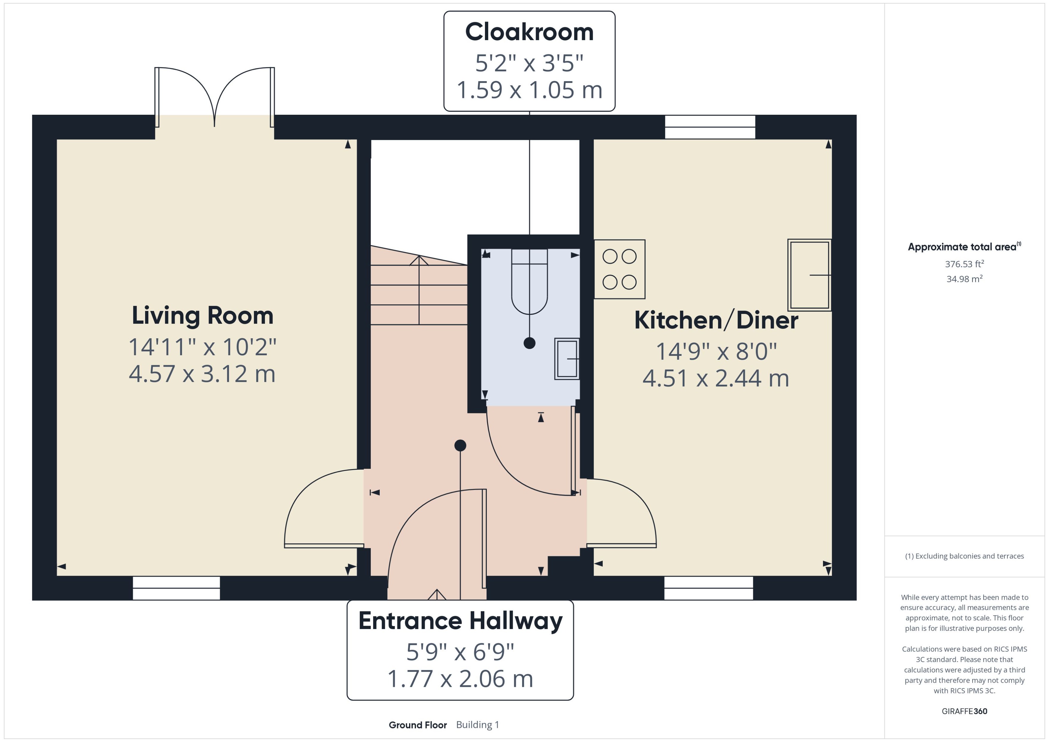 Cloakroom : 5’2” x 3’5” (1.59m x 1.05m)