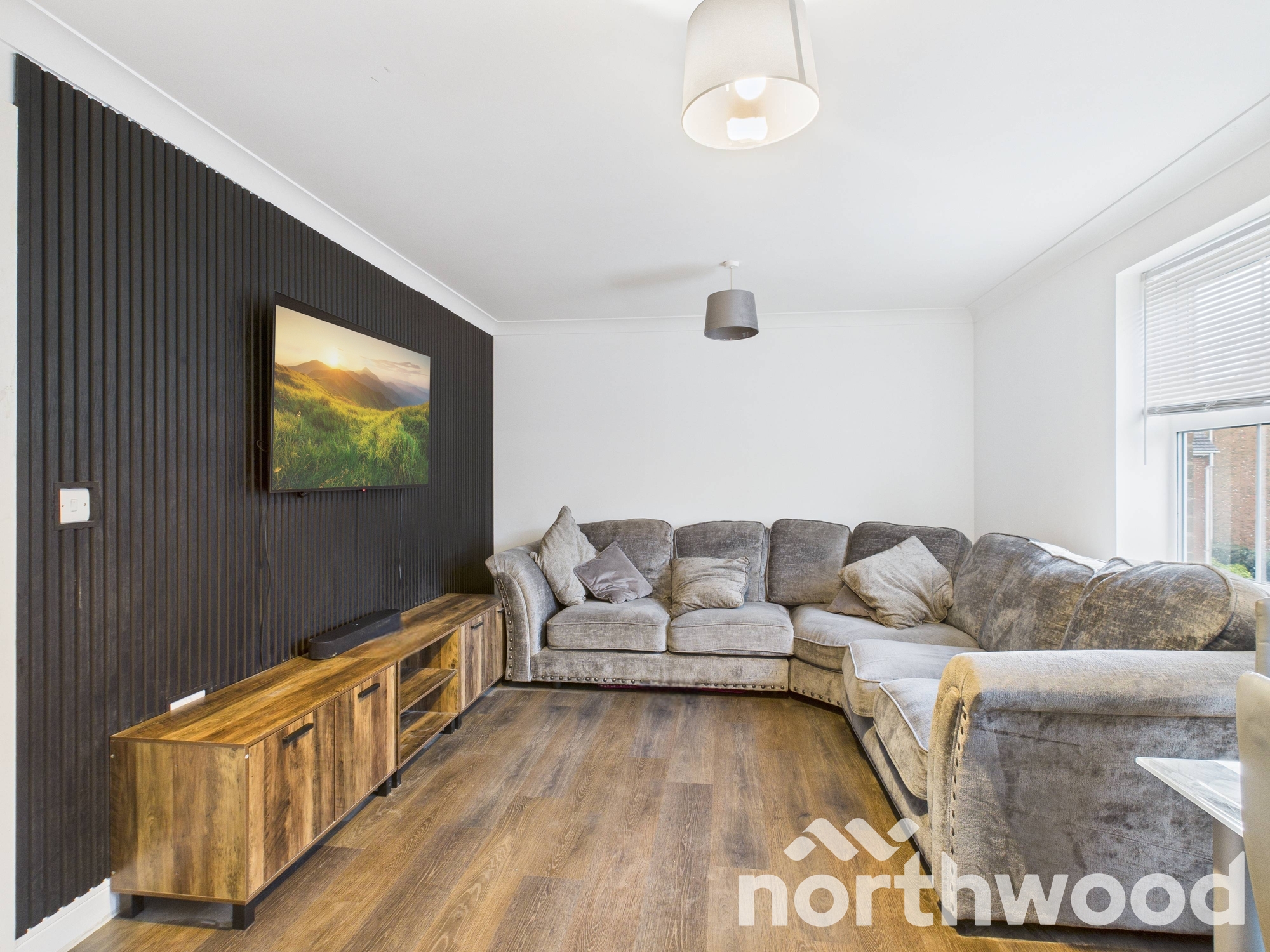 Upon entering the apartment, you are greeted by a bright and well proportioned hallway, offering access to all rooms and providing useful space for coats, shoes and everyday essentials, an airing cupboard houses a newly fitted hot water tank. The layout flows naturally into a spacious living and dining area, finished in neutral tones and benefiting from windows that fill the room with natural light, an ideal setting for both relaxation and entertaining.