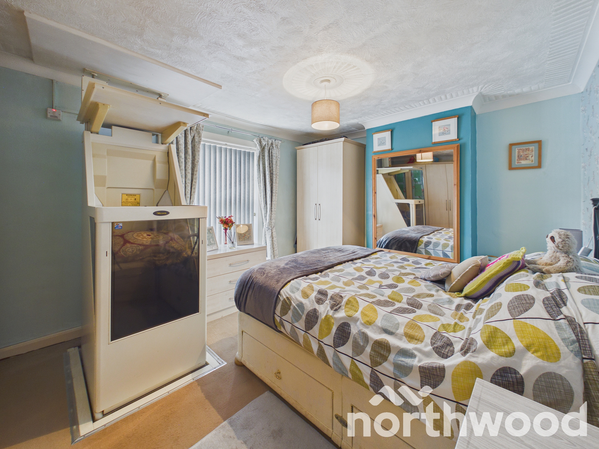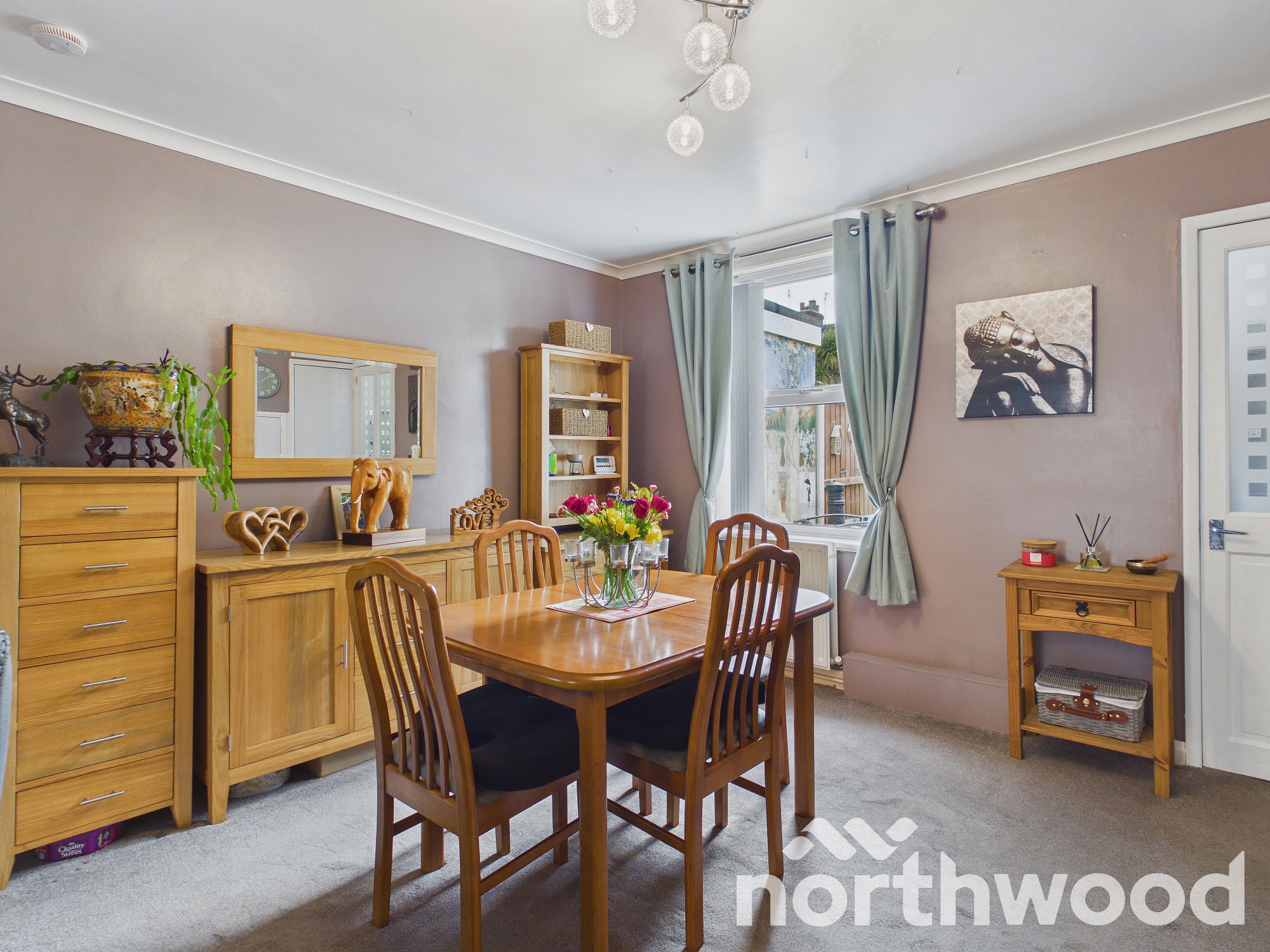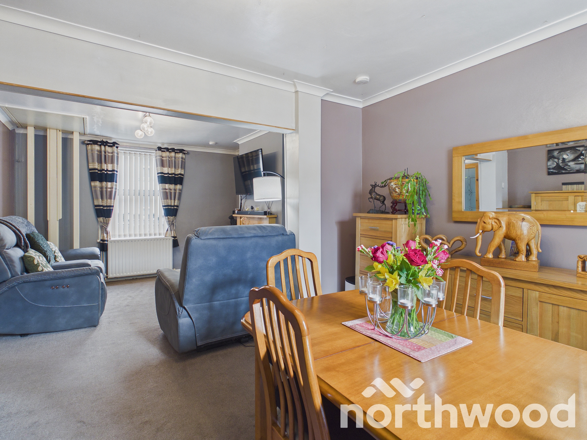 The property begins with a useful enclosed porch, leading into a welcoming hallway. The ground floor offers a traditional layout with contemporary conveniences, with a comfortable living room to the front opening onto a separate dining space behind, providing flexible space for everyday living and entertaining. A lift has been installed from the living room to the principal bedroom above, offering valuable accessibility benefits, but this can be removed if not required.