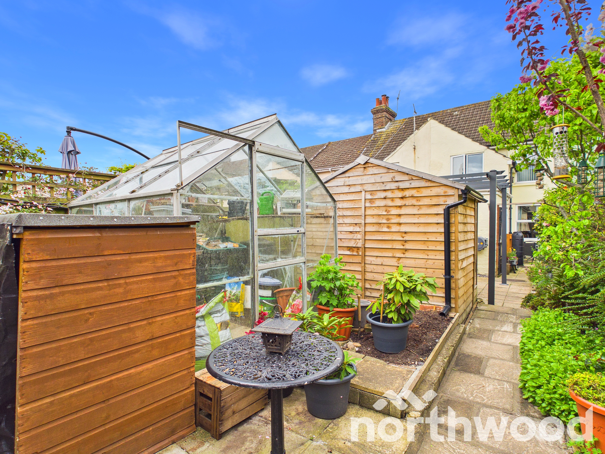 The rear garden is a real highlight, offering a surprising amount of space and versatility. The courtyard area is brightened by a beautiful hand painted mural, adding a unique and personal touch to the home. Beyond this are a number of useful outbuildings, including a workshop, a summerhouse and a greenhouse, providing superb options for hobbies, storage or creative use.